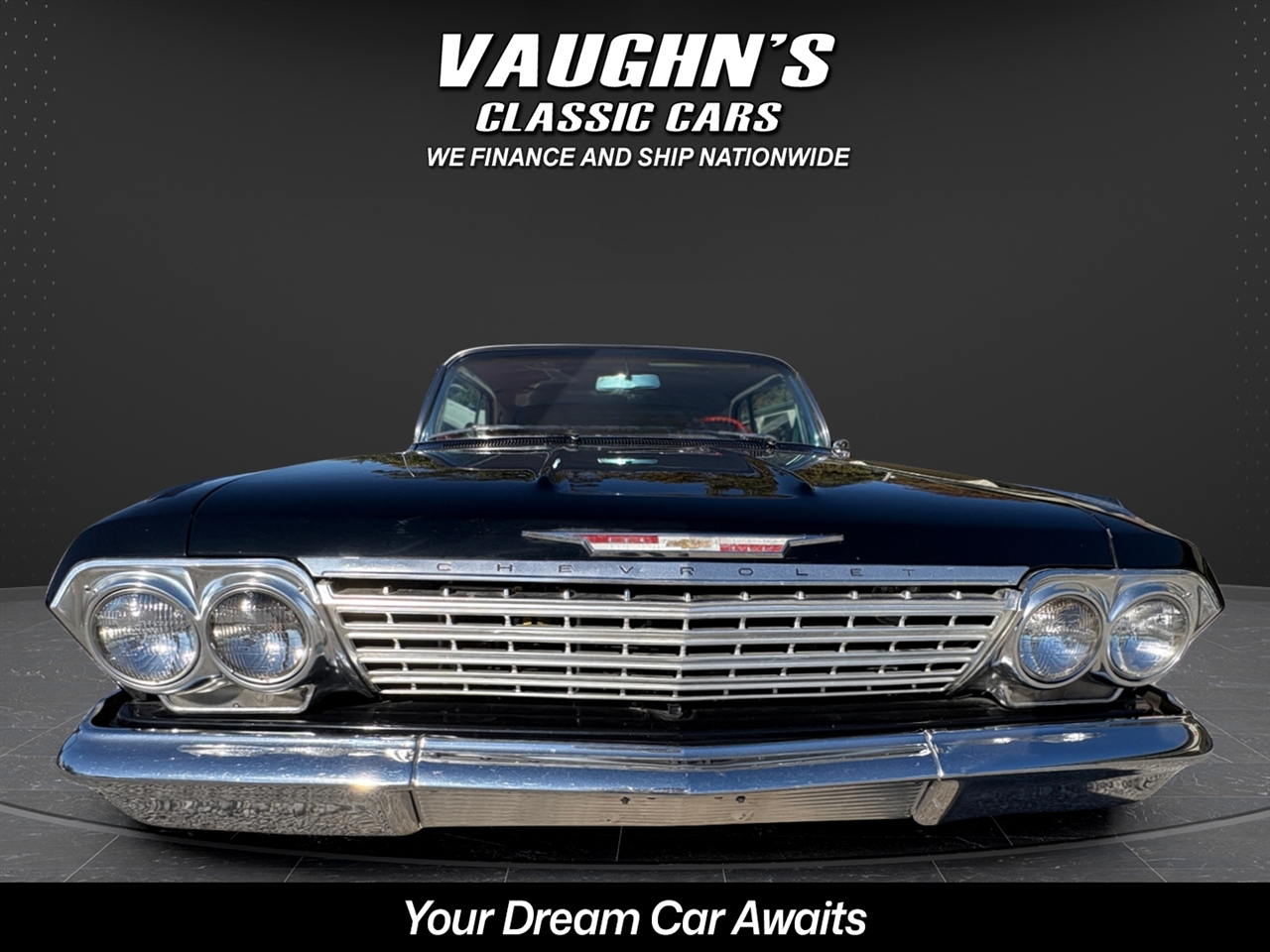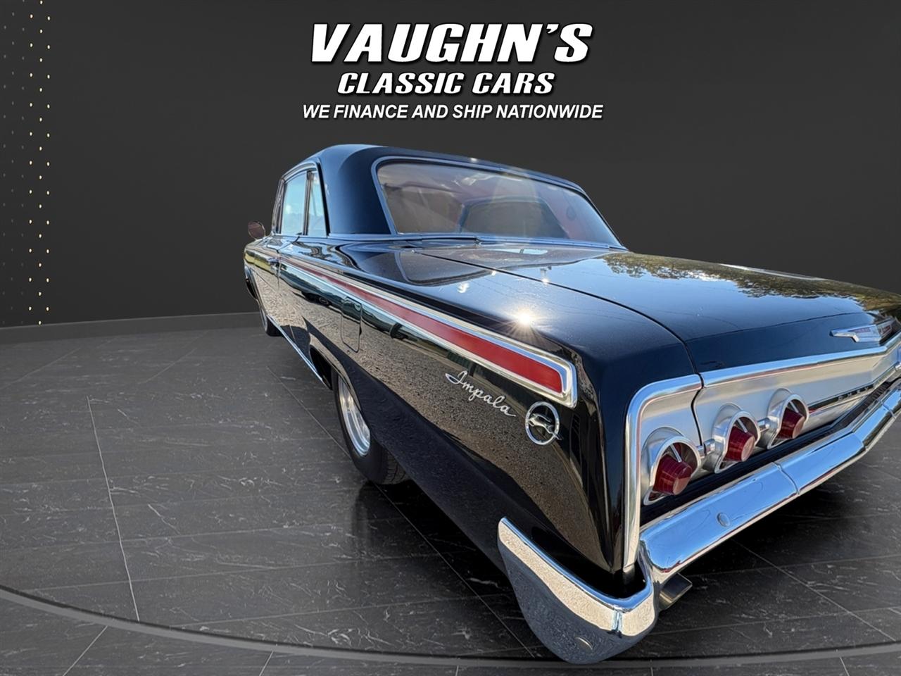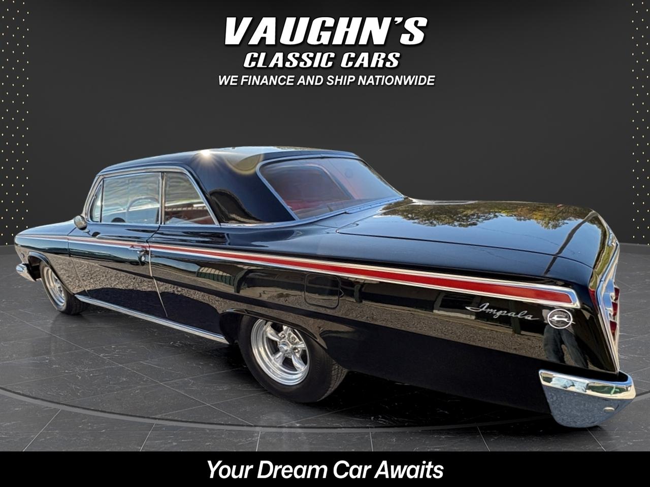 Take a look at this cool 1962 Chevy Impala with strong running 327 V8 and 4 speed with Hurst shifter, posi trac rearend, super solid body with very nice paint, mostly original interior, Power steering and drum brakes, Vintage air, American Racing Torque Thrust staggard wheels with decent tires, Retro Sound upgraded radio, Sun side sweet tachometer, sweet sounding dual exhaust, and very nice chrome and glass. All gauges and dash lights work correctly. This car is being sold for a local owner who purchased the car it around 12 years ago and he had it repainted at that time. That was the cars first and only repaint. Very nice trunk that is all detailed with original spare tire. The car runs strong and drives excellent. Very dependable car that is a dream to drive and turns all the heads. Check with us for great financing options and nationwide shipping. Call us at 618 336 5210 to discuss a deal!