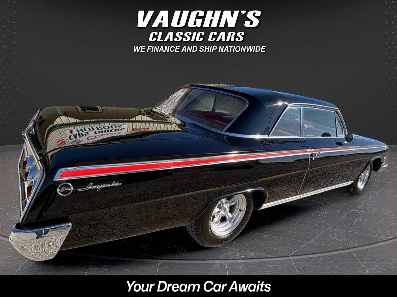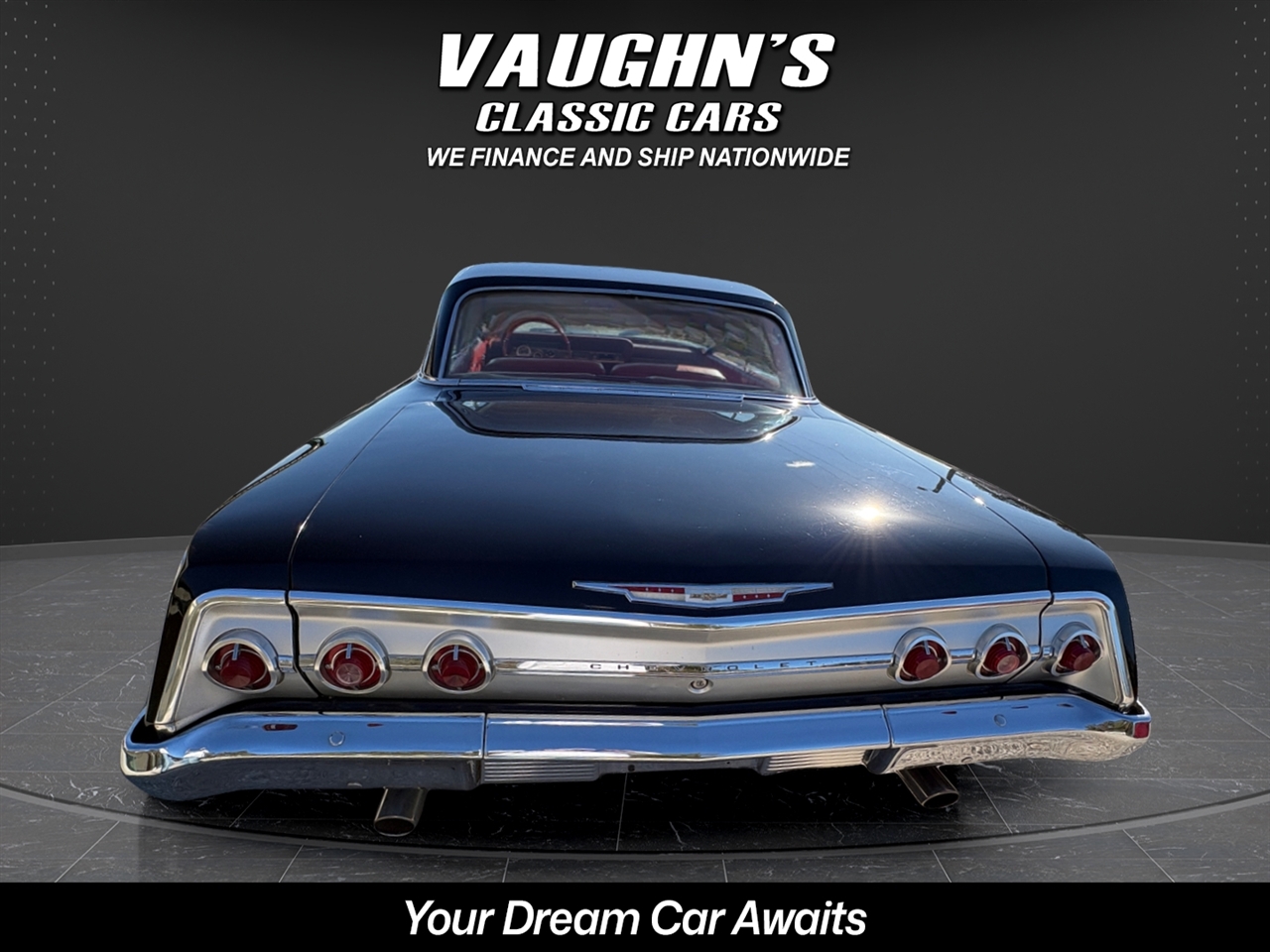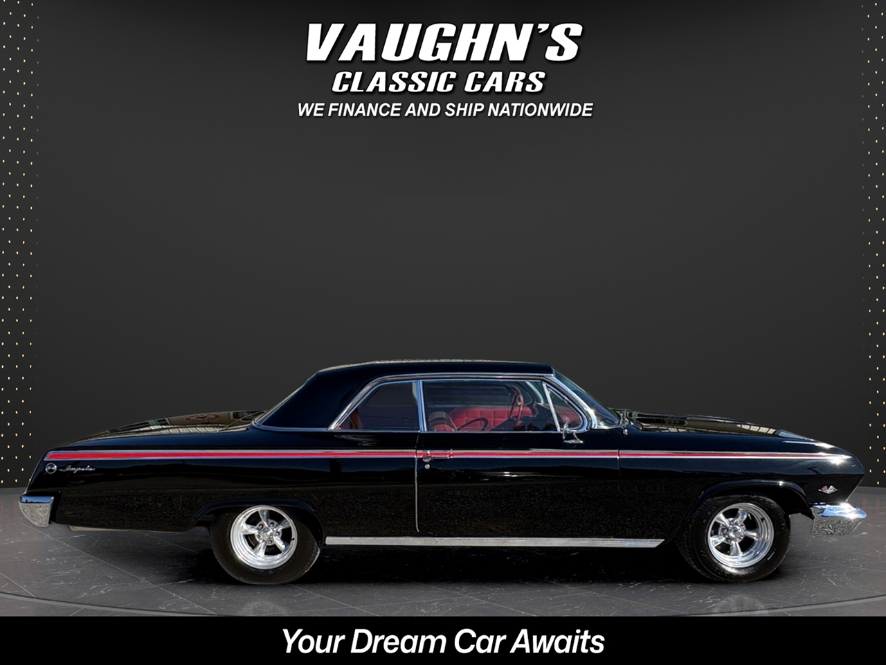 Take a look at this cool 1962 Chevy Impala with strong running 327 V8 and 4 speed with Hurst shifter, posi trac rearend, super solid body with very nice paint, mostly original interior, Power steering and drum brakes, Vintage air, American Racing Torque Thrust staggard wheels with decent tires, Retro Sound upgraded radio, Sun side sweet tachometer, sweet sounding dual exhaust, and very nice chrome and glass. All gauges and dash lights work correctly. This car is being sold for a local owner who purchased the car it around 12 years ago and he had it repainted at that time. That was the cars first and only repaint. Very nice trunk that is all detailed with original spare tire. The car runs strong and drives excellent. Very dependable car that is a dream to drive and turns all the heads. Check with us for great financing options and nationwide shipping. Call us at 618 336 5210 to discuss a deal!