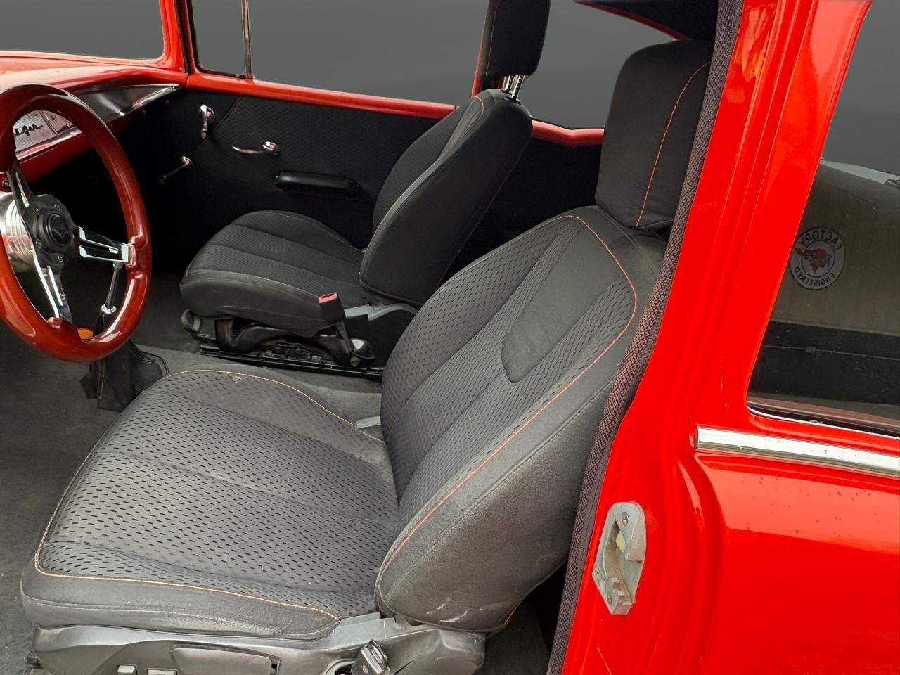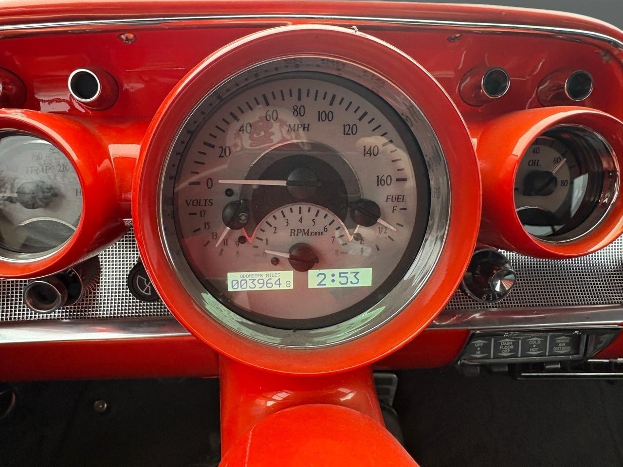 Wow! Check out this sweet 1957 Chevy 210 that is new top to bottom. This is a 3-yr old build with no expense spared. It has a 350 V8 that was bored 20 over and is a roller motor, 350 turbo transmission with racing clutches and shift kit, MSD fuel injection, stainless 2 1/2" exhaust with Patriot coated headers, and CVF serpentine belt system. The car has a 10-bolt open rearend with 3:50 gears, all new suspension with tubular a arms, neoprene body mounts, triangulated rear suspension with rear air ride system, Power steering and power front disk brakes. It has a "Tanks" tank with fuel pump in tank, stainless brake lines, all new American Autowire wiring, LED taillights, all new chrome, tinted glass all around, beautiful GM Inferno Orange paint job. The interior features custom front bucket seats all upholstered in a nice cloth to match with the cool orange stitching, vintage heat and air, tilt wheel column, and Dakota Digital analog gauges. Torque thrust wheels and just the right stance makes this tri five one to get ahold of. We offer great financing options with 10% down and nationwide shipping! Call us at 618 336 5210 to discuss a deal.