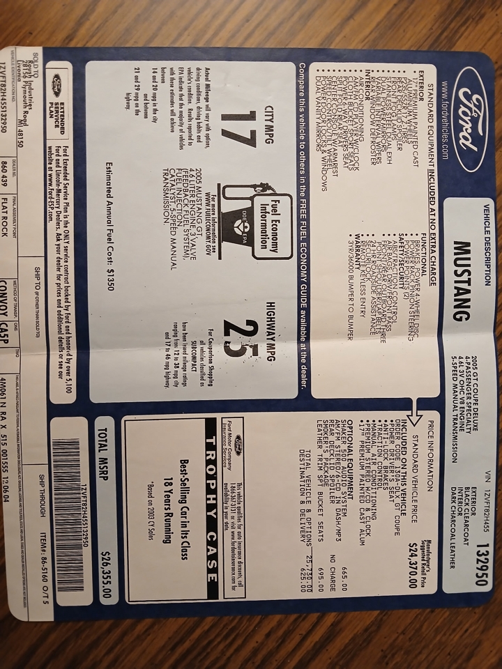 2005 Ford MUSTANG GT 2dr Cpe GT Deluxe